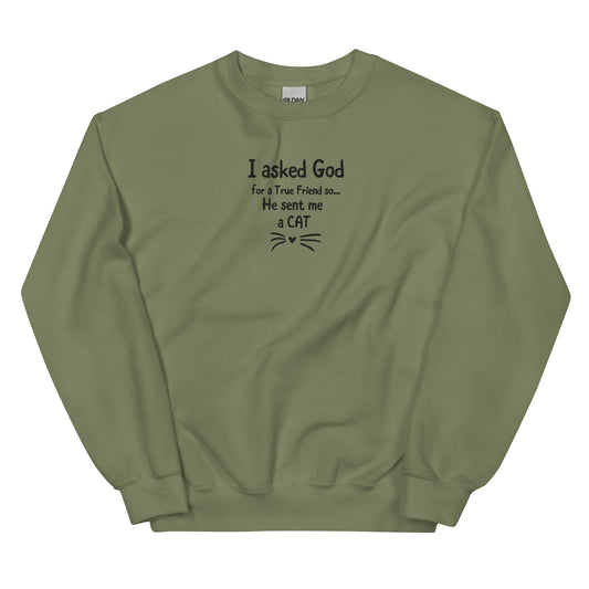 I Asked God for a True Friend Cat Embroidered Sweatshirt