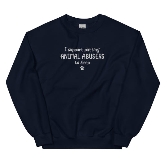 I Support Putting Animal Abusers To Sleep Embroidered Sweatshirt
