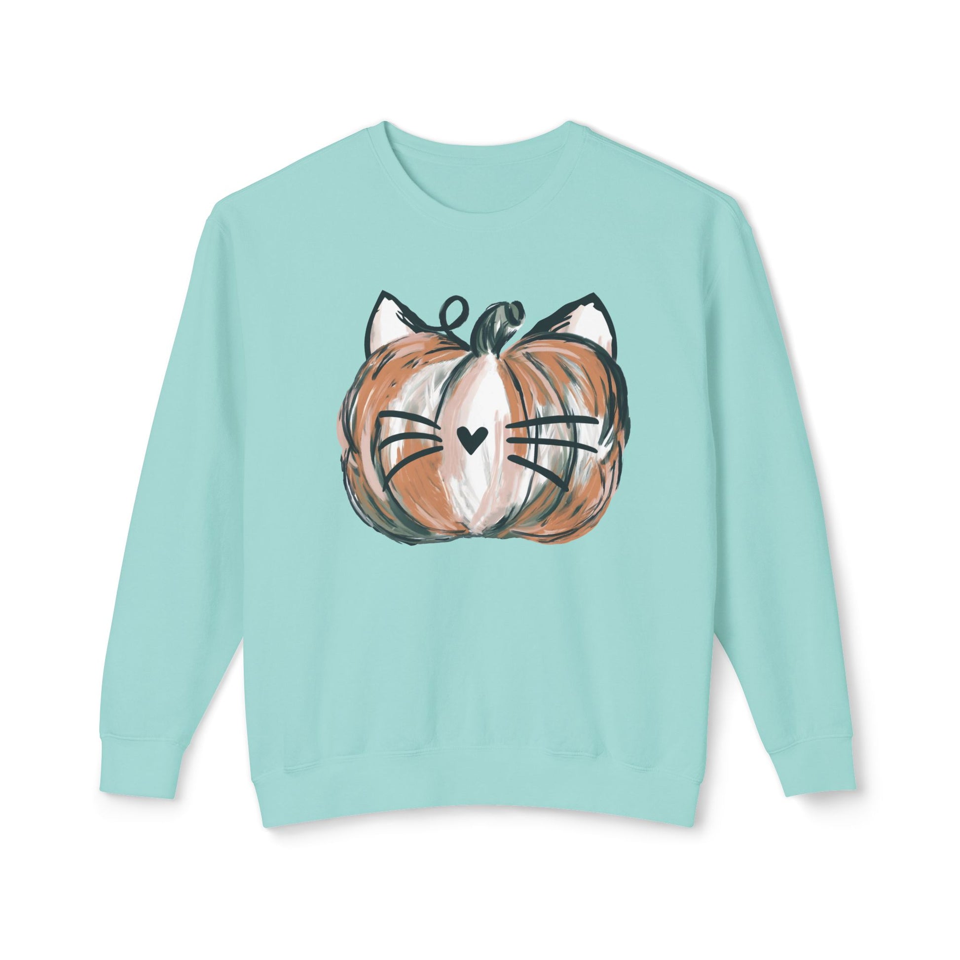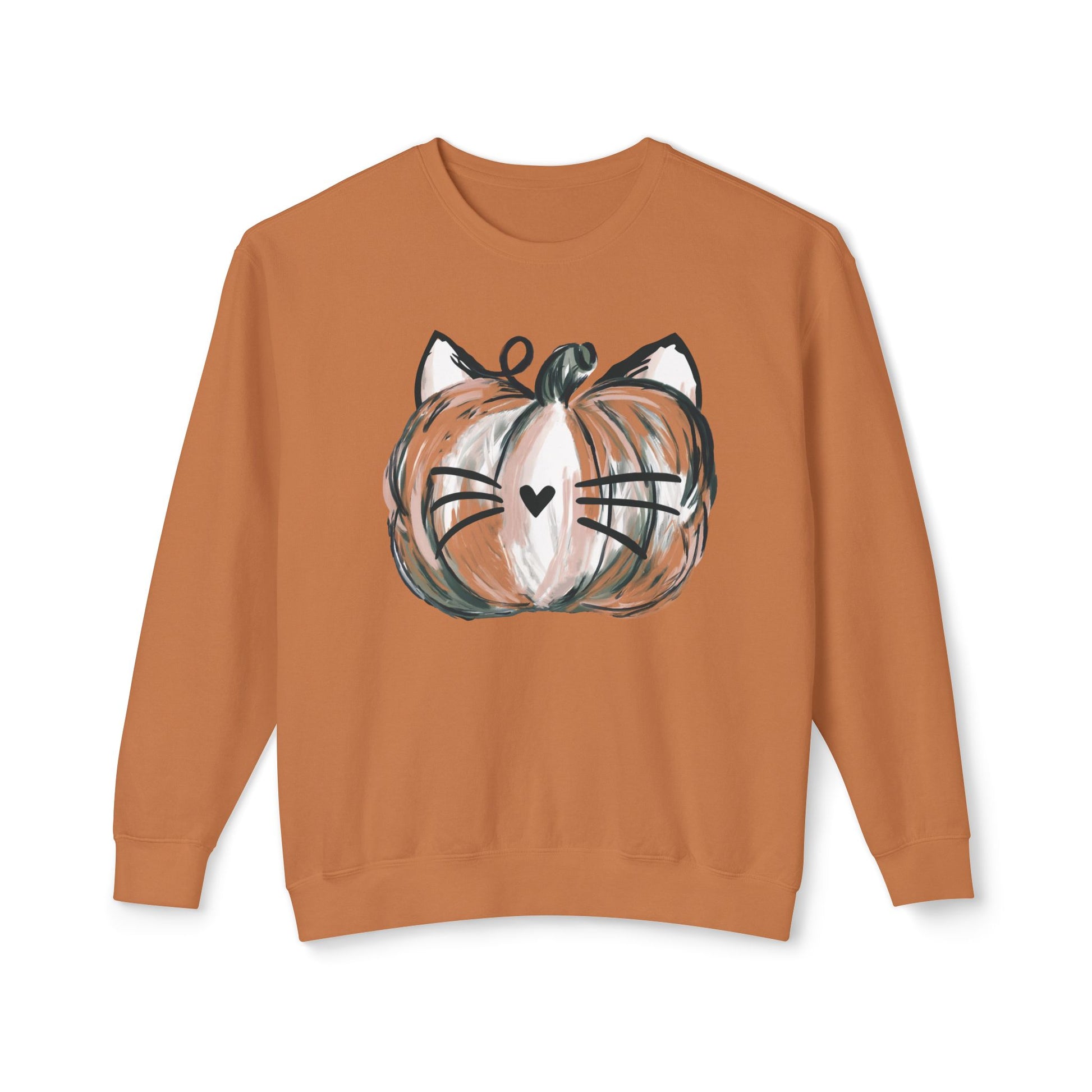 Introducing a cozy and stylish Unisex Lightweight Crewneck Sweatshirt that captures the essence of warmth and creativity. Perfect for chilly days, this sweatshirt adds a playful touch to your wardrobe with its charming design featuring a whimsical pumpkin cat. Whether you’re lounging at home, heading out for a casual day, or enjoying a festive gathering, this sweatshirt is your go-to choice for comfort and style. Ideal for cat lovers and those who appreciate unique art, it's a perfect gift for Halloween, cozy family gatherings, or simply for a love of playful designs. Embrace the spirit of the season while staying comfy!